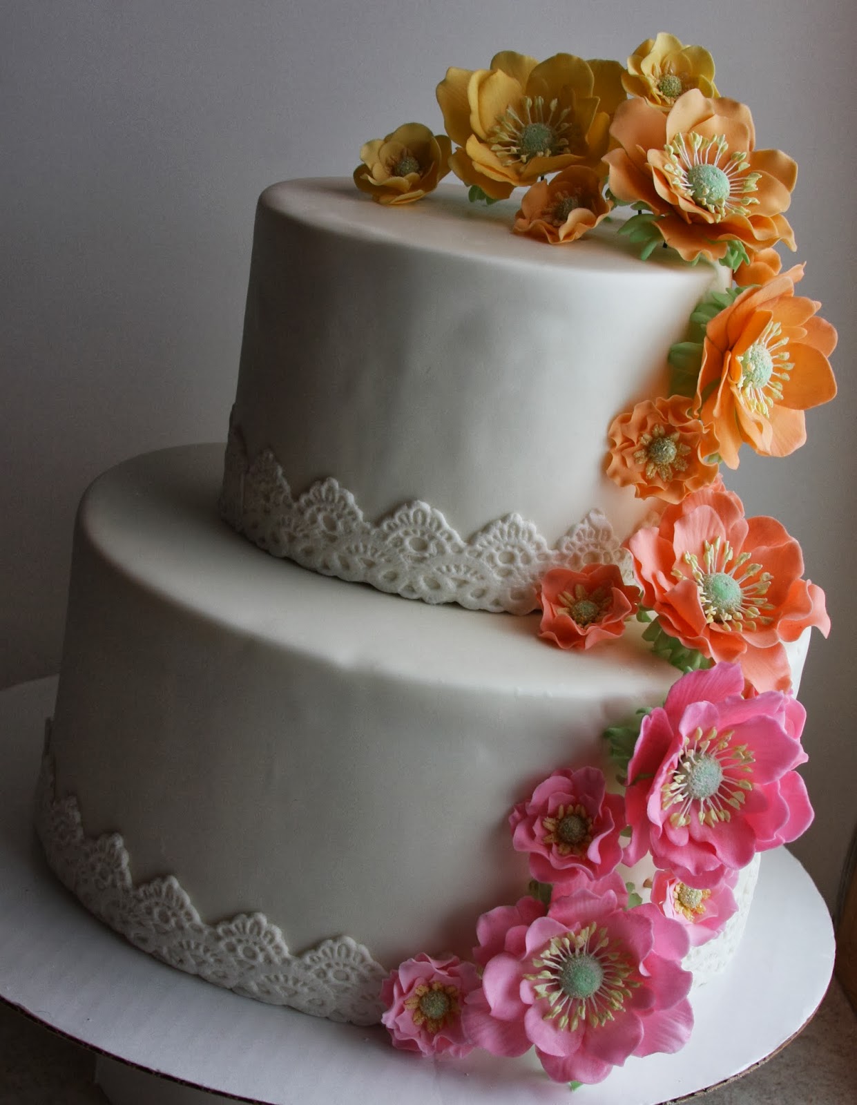 This is one of the first ones I did. This cake was purely an "accident". Well, it was inspired by one anyway. Mike and I were driving home from delivering a cake on a rainy afternoon when a young buck couldn't decide which way he wanted to go across the street. Unfortunately, he chose the wrong way. Fortunately, he wasn't hurt and neither was our vehicle, but as we stopped to check for damage, I noticed the beautiful lilies in the pond next to us. I was thankful that my camera was in the van and snapped a couple of photos. My husband kids that only I could turn a deer collision into a photo-op. :o)